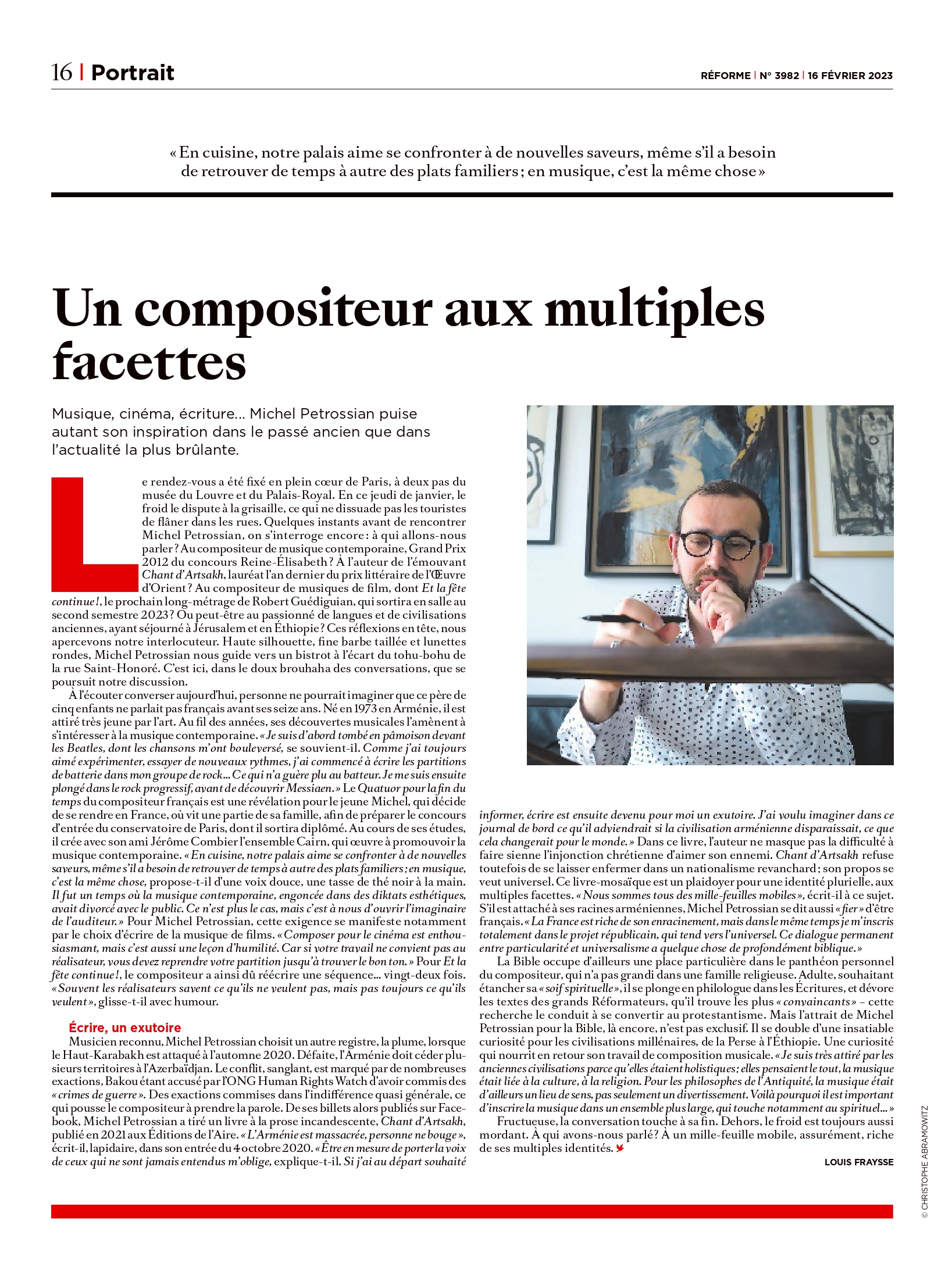 Portrait dans Réforme, par Louis Fraysse. Février 2023
